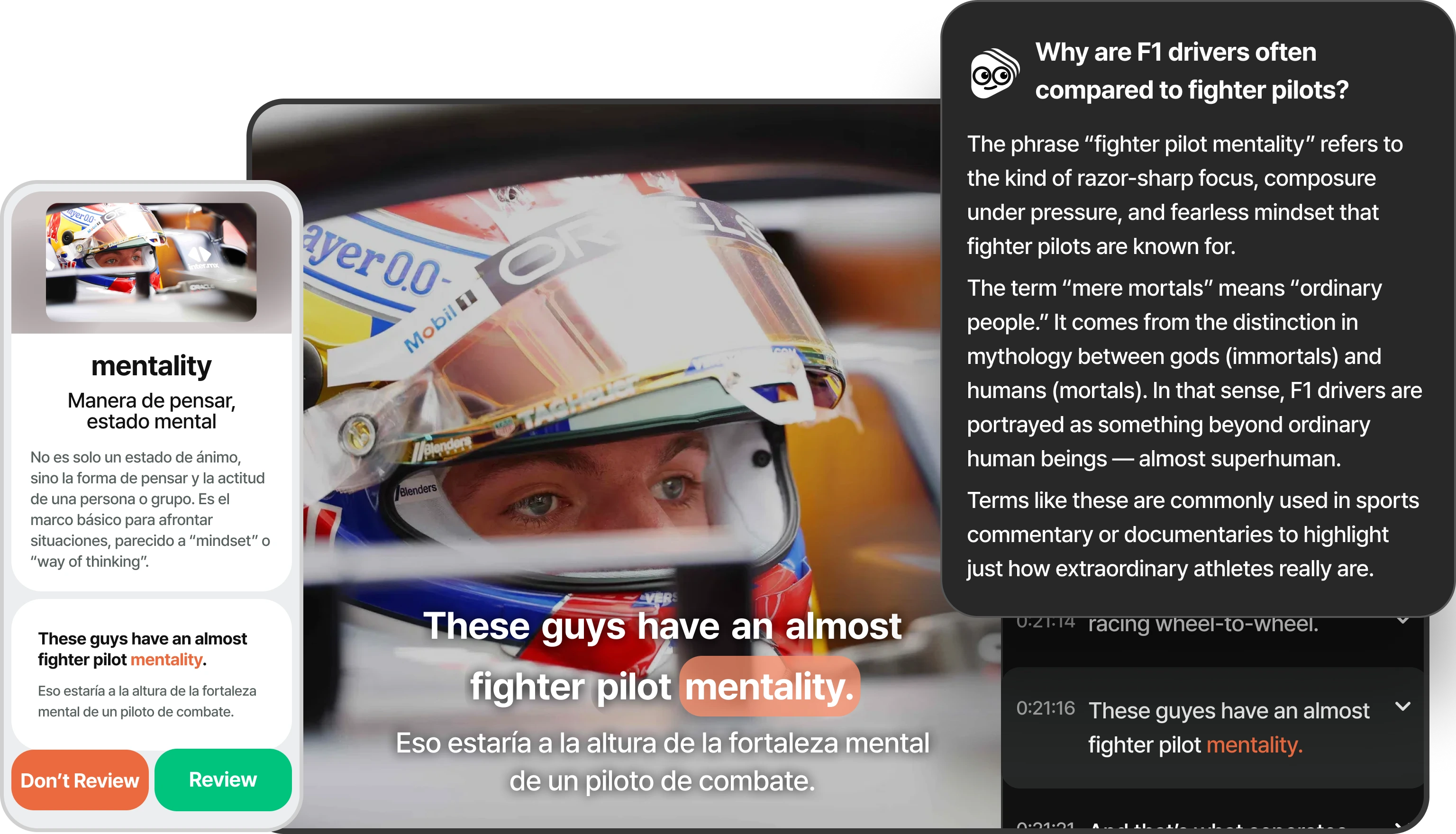 While watching, click on unfamiliar terms to add them to Review. You can also see detailed explanations in the Sidebar.